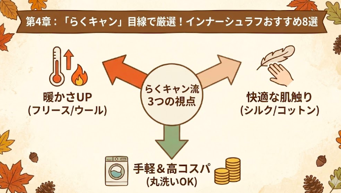 お待たせしました!「暖かさ」「肌触り」「コスパ(らくキャン度)」の3つの視点で、私が自信を持っておすすめする8モデルを厳選しました。