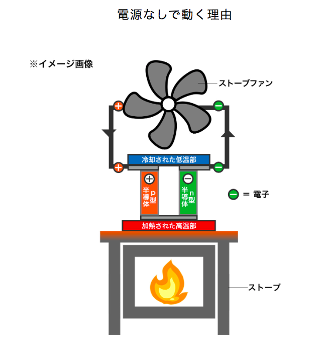 「なぜ電池もないのに勝手に回るの?」と不思議に思いますよね。 これは「ゼーベック効果」という科学現象を利用しています。