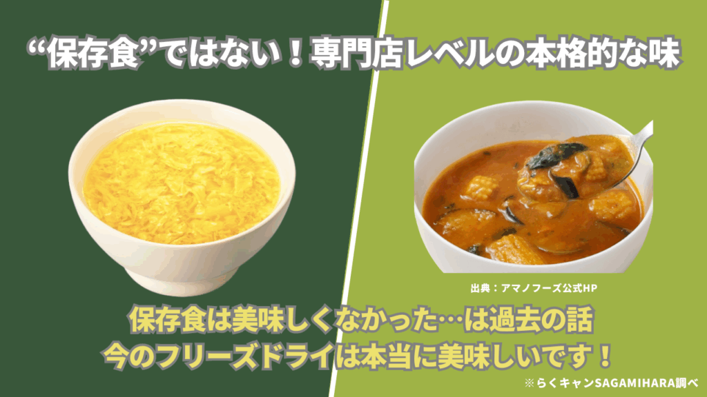 「保存食でしょ?味はイマイチなんじゃ…」なんて思っていたら、もったいない!今のフリーズドライは技術の進化が凄まじく、専門店レベルの本格的な味がお湯を注ぐだけで楽しめるんです。